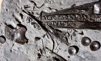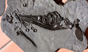 Below is a picture if the skull of an Ichthyosaurus breviceps which was recently found by Museum Geologist, Paddy Howe in the weathered remains of the May 2008 landslip on Church cliffs, Lyme Regis. It is only the ninth fossil skull ever found of this species.